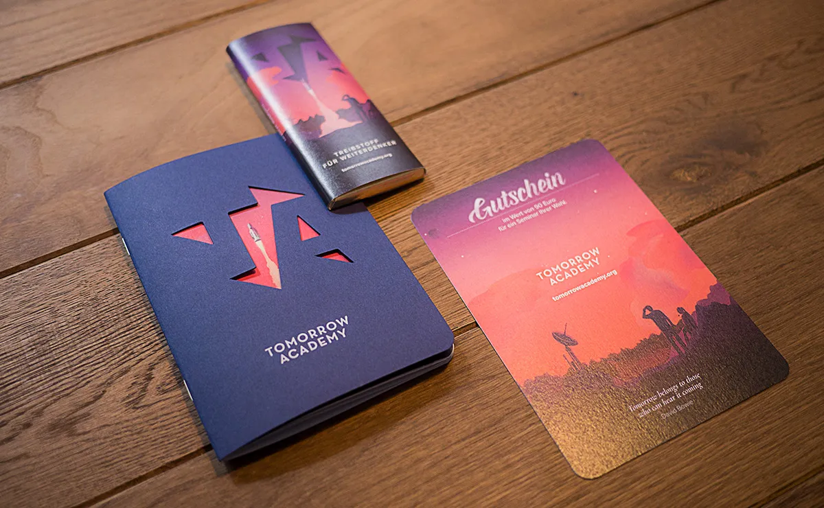 Die Tomorrow Academy wünschte sich Illustrationen mit einem retro-futuristischen Touch. So wie sich Innovatoren früher das nächste Jahrhundert vorstellten, sollten auch ihre Workshop-Teilnehmer den Mut spüren an das unmögliche zu denken. An das zu glauben, was da noch in der Zukunft auf uns wartet.