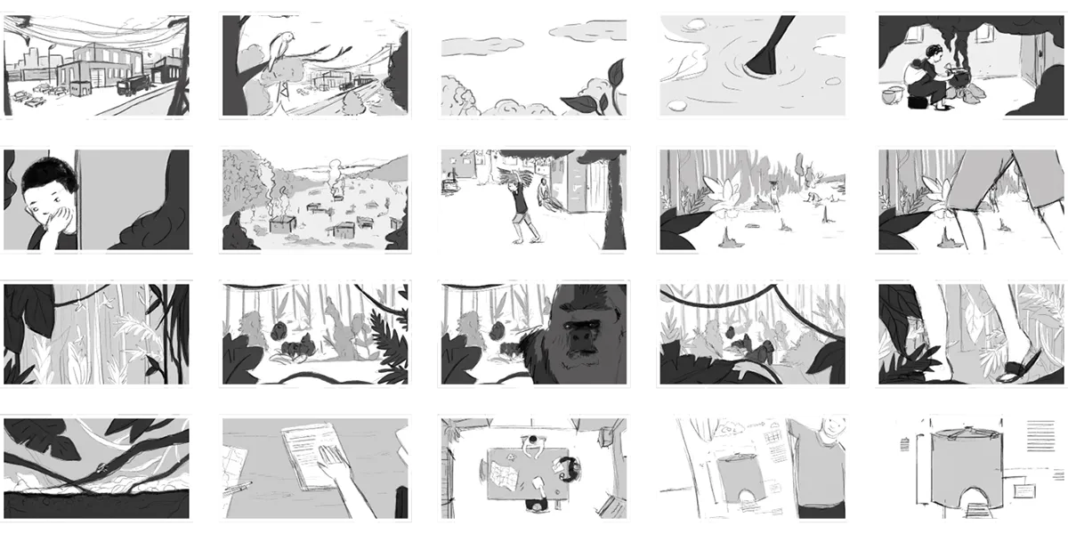 Wir starteten mit der Vorstellung der Problematik der Einwohner und Gorillas in Ruanda, um sofort eine emotionale Verbindung zum Zuseher herzustellen. Darauf folgte die Präsentation der Lösung und seiner positiven Auswirkungen, sowie die Erklärung, wie sich Unternehmen an diesem Projekt beteiligen können.
